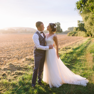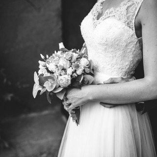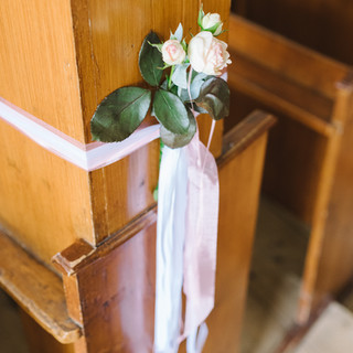 Jasmin und Michael, die ihre "Bewährungsprobe" aufgrund häufiger beruflicher Trennungen in der Vergangenheit mit Bravour bestanden hatten, zeigten sich mir während des gesamten Tages als aufgeschlossenes und harmonisches Paar, und es machte Spaß, sie an ihrem besonderen Tag fotografisch zu begleiten. Nachdem sie sich separat mit Hilfe ihrer Trauzeugen vorbereitet hatten, war es für den Bräutigam in stilvollem Anzug und der Braut in klassisch schönem Brautkleid Zeit für das Ja-Wort. Dieses gaben sie sich in der Gutskapelle Niedergandern, einer hübschen Kapelle im klassizistischen Baustil. Was mir hier besonders in Erinnerung geblieben ist, war die einmalige Anordnung des Kirchraums als Rondell, was mich ein wenig an ein Amphitheater erinnerte.