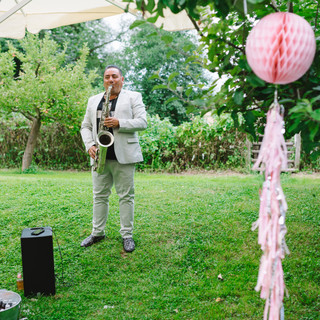 Anschließend ging es für das Brautpaar und die vielen Gäste aus vielen Teilen der Welt zum Sektempfang in den hübschen Garten des Ritterguts, wo sich mit Saxophonbegleitung unter Obstbäumen auf das rauschende Fest eingestimmt wurde. Während die Gäste sich stärken durften, begaben sich Jasmin und Michael auf einen kleinen romantischen Spaziergang in die unberührte Natur rund um das Rittergut, bei dem einmalig schöne Aufnahmen des Brautpaares entstanden sind.